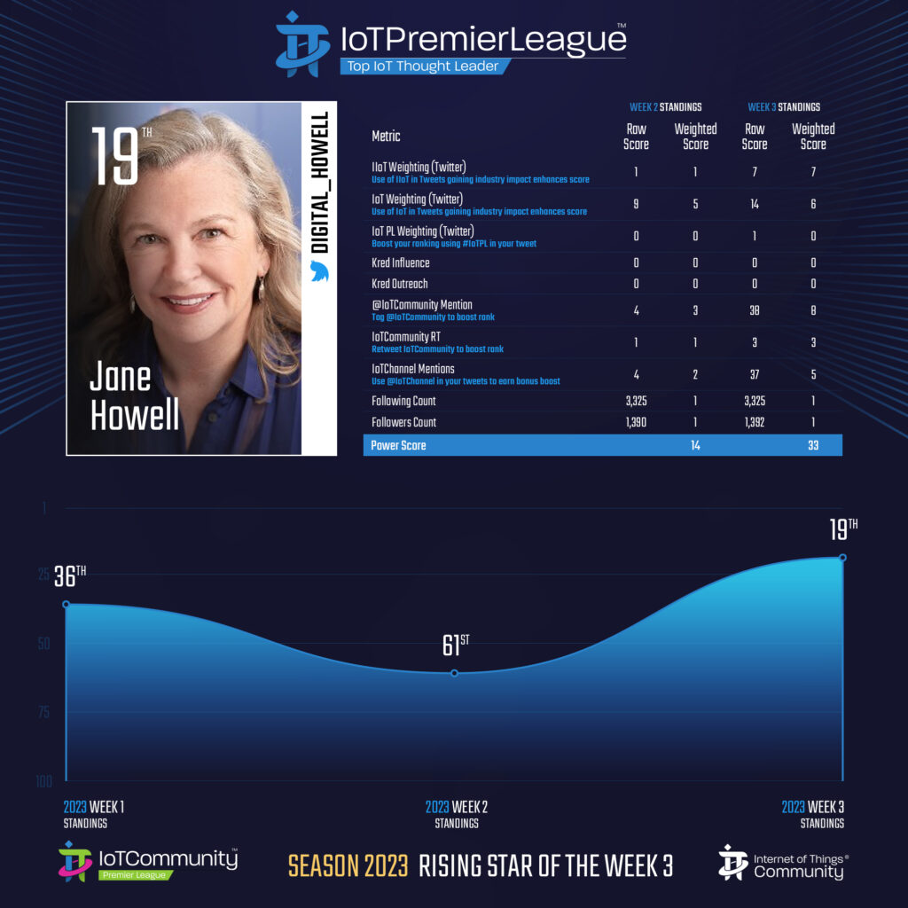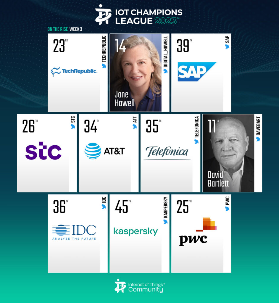 Since 2019, The IoT Premier League™ has been tracking the most inspiring social media accounts of the IoT landscape. This cuts across individual thought leaders, corporate handles and media, industry / analysts; recognising the most so you can follow them, join the community and learn more from the movers and shakers of the Internet of Things.