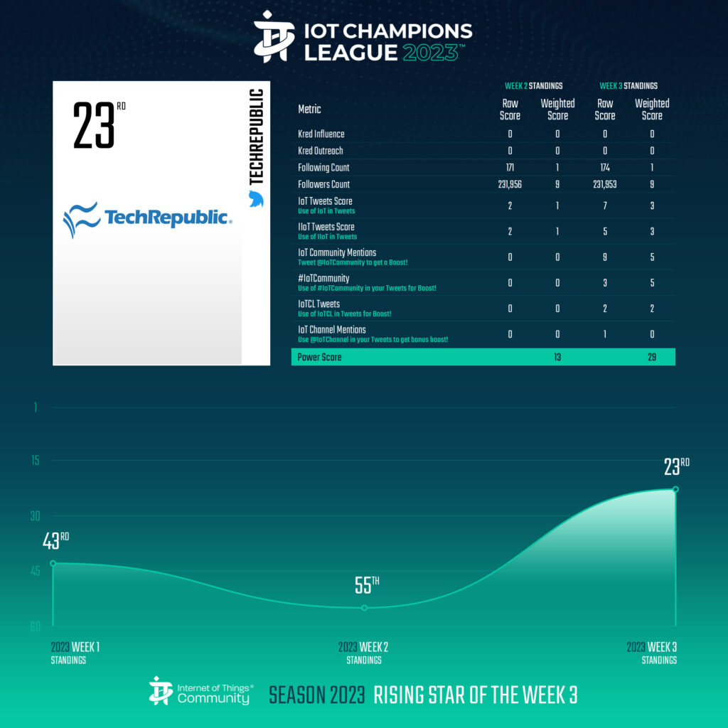 Week 3 standings of the 2023 IoT Premier League and IoT Champions League are published!