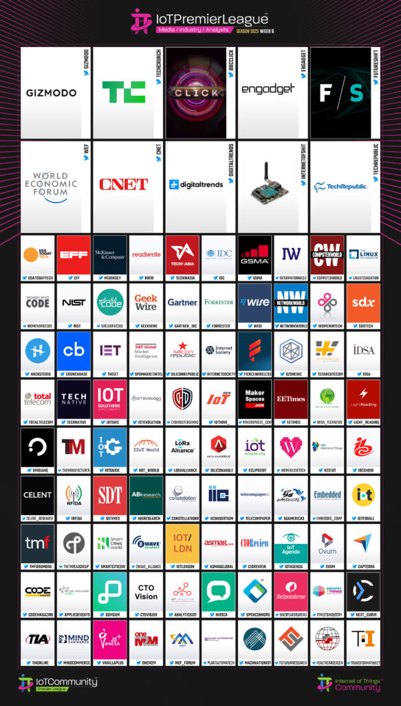 IoT Premier League: Media, Industry & Analysts Division –Top 100: