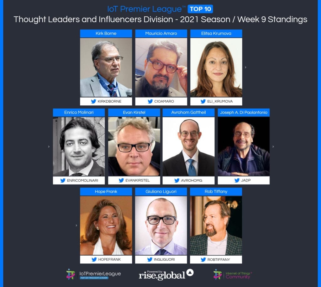 Since 2019, The IoT Premier League™ has been tracking the most inspiring social media accounts of the IoT landscape. This cuts across individual thought leaders, corporate handles and media, industry / analysts; recognising the most so you can follow them, join the community and learn more from the movers and shakers of the Internet of Things.