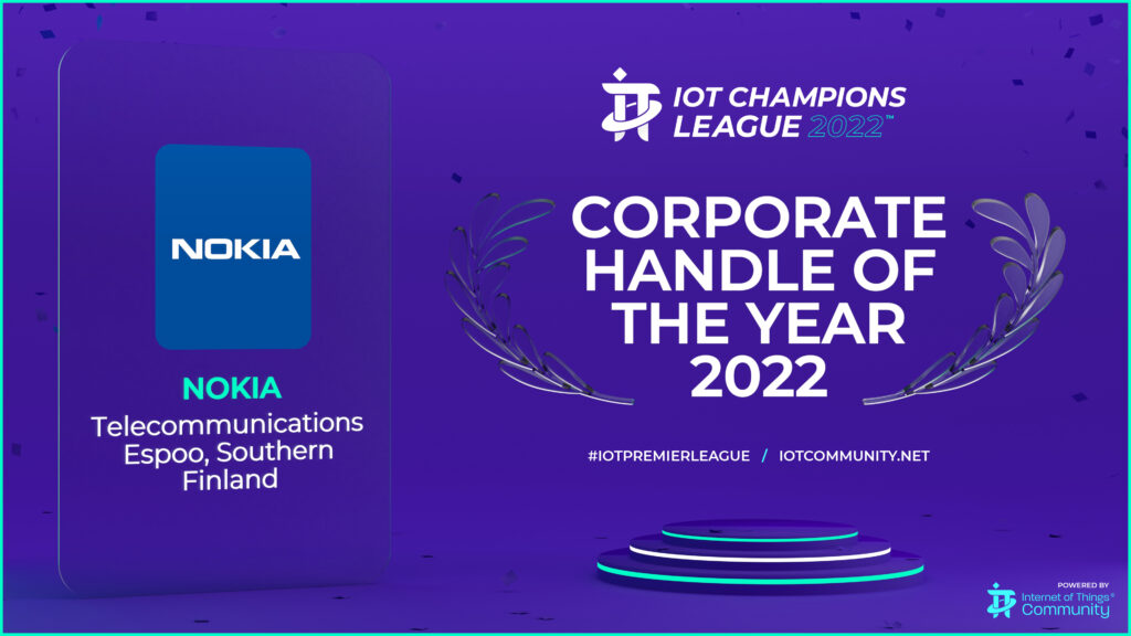 Congratulations to Nokia, the IoT Champions League 2022 Corporate Handle of the Year 2022