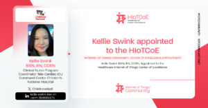 Kellie Swink BSN, RN, CCRN, Children's National Hospital, aappointed as a Pillar of Excellence Leader of the Healthcare Internet of Things Center of Excellence