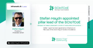 The IoT Community is thrilled to announce Stefan Haydn, Co-founder, Inframatic, joins the SCIoTCoE. Stefan has been appointed as the Infrastrcture […] -