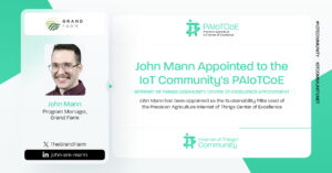 The IoT Community is thrilled to announce John Mann, Program Manager Grand Farm, joins the PAIoTCoE. John has been appointed as the Sustainability […] -