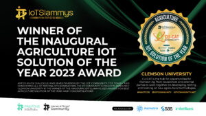 Clemson University Center for Agricultural Technology (CU-CAT) named as the inaugural IoT Slammys Awards CoE and Peoples Choice Award Winner for Precision Agriculture IoT Solution of the Year 2023