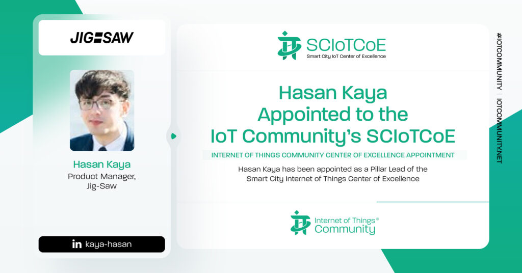 The IoT Community is thrilled to announce Hasan Kaya, Product Manager, Jig-Saw, joins the SCIoTCoE. Hasan has been appointed as a Pillar Lead for the Smart Cities Internet of Things Center of Excellence. Please join us in congratulating Hasan on his new role in the IoT Community.