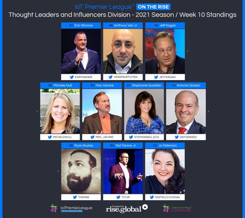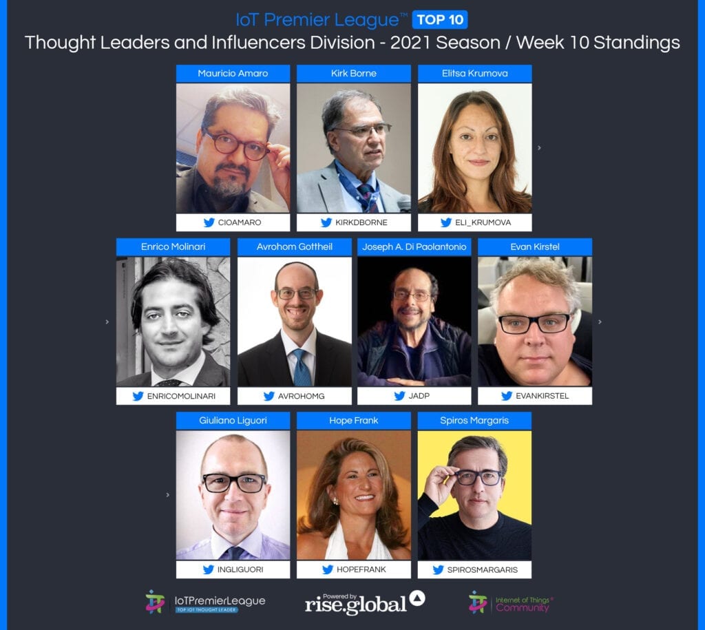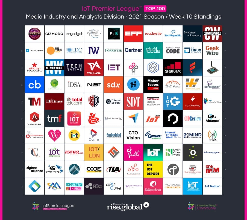 Since 2019, The IoT Premier League™ has been tracking the most inspiring social media accounts of the IoT landscape. This cuts across individual thought leaders, corporate handles and media, industry / analysts; recognising the most so you can follow them, join the community and learn more from the movers and shakers of the Internet of Things.
