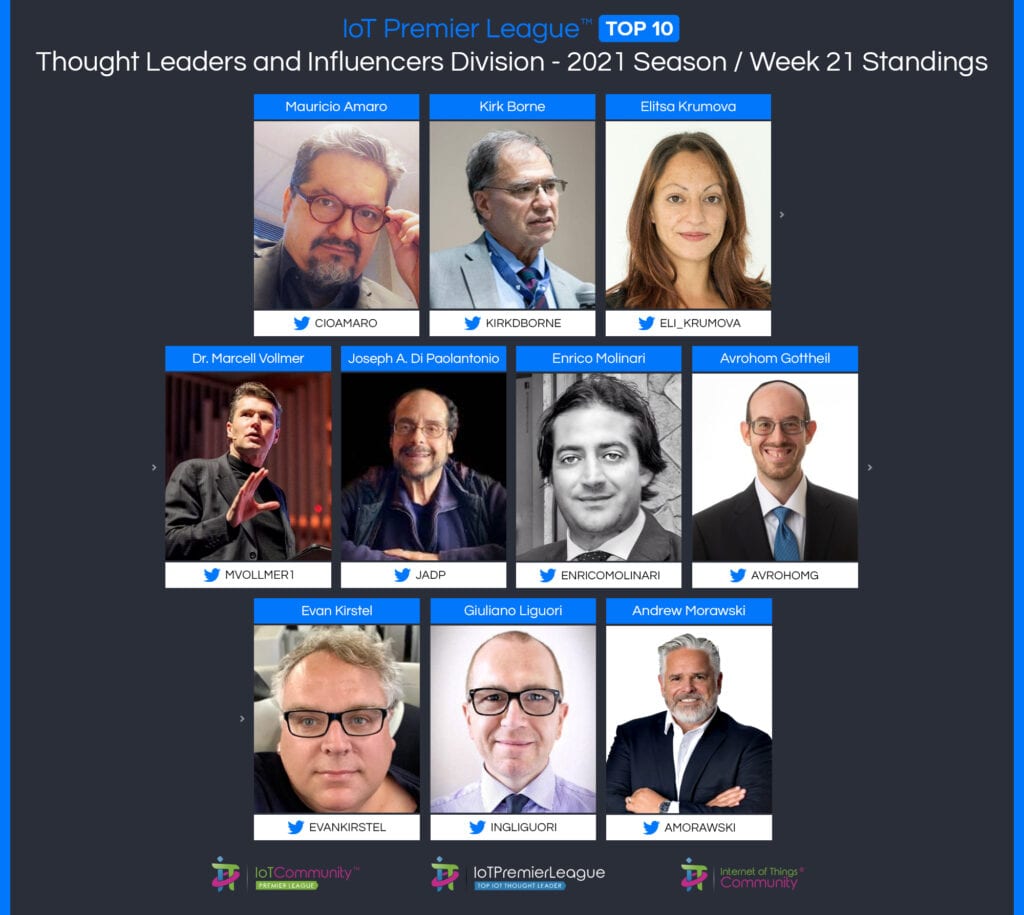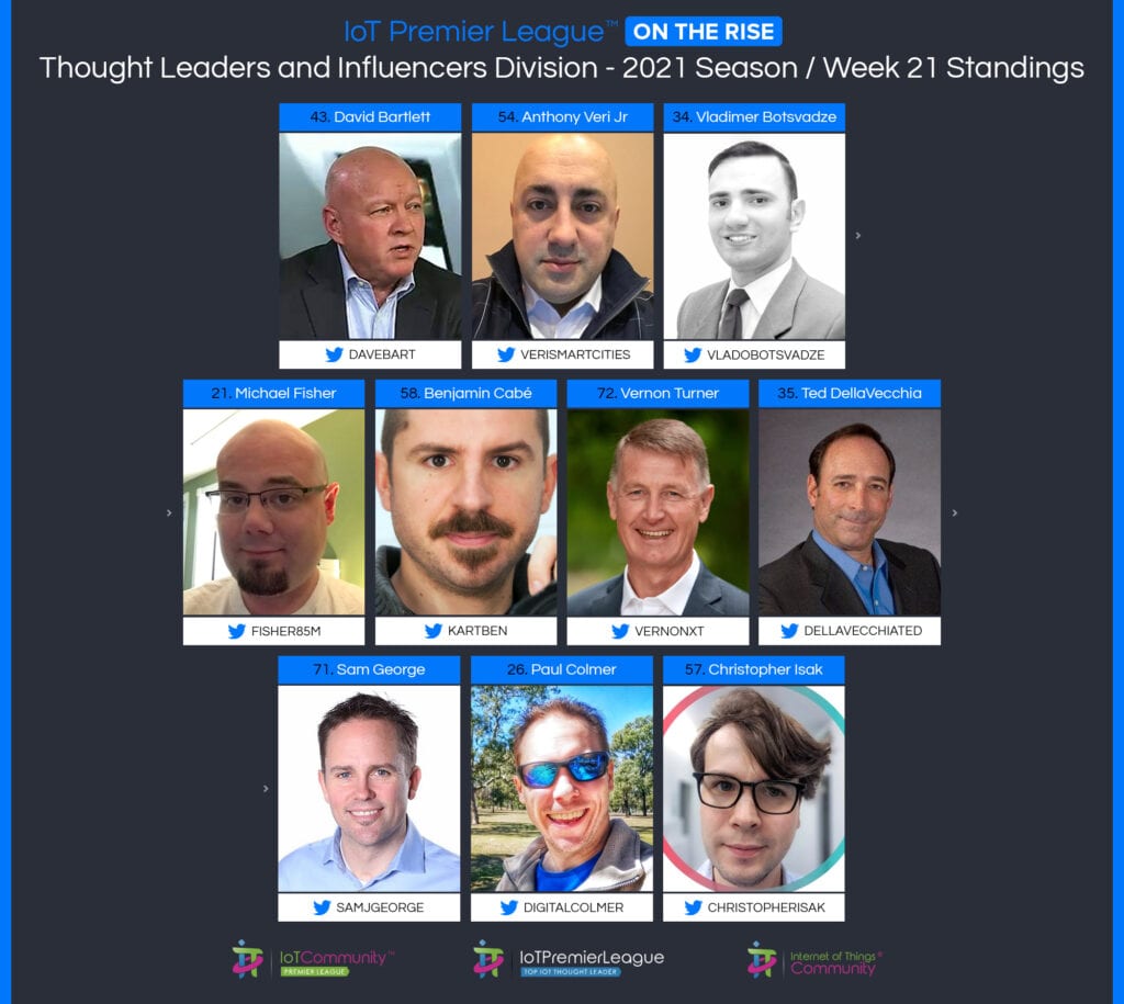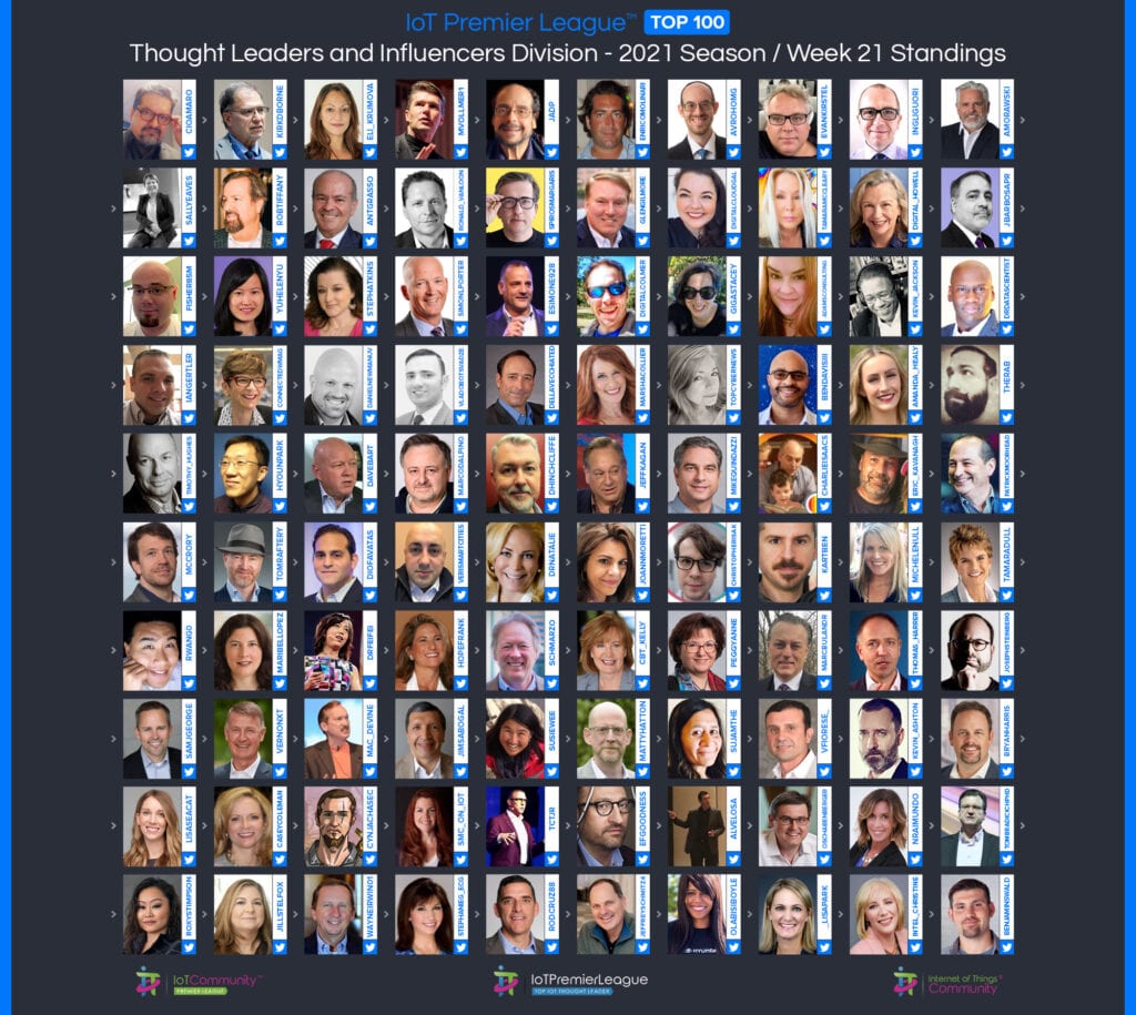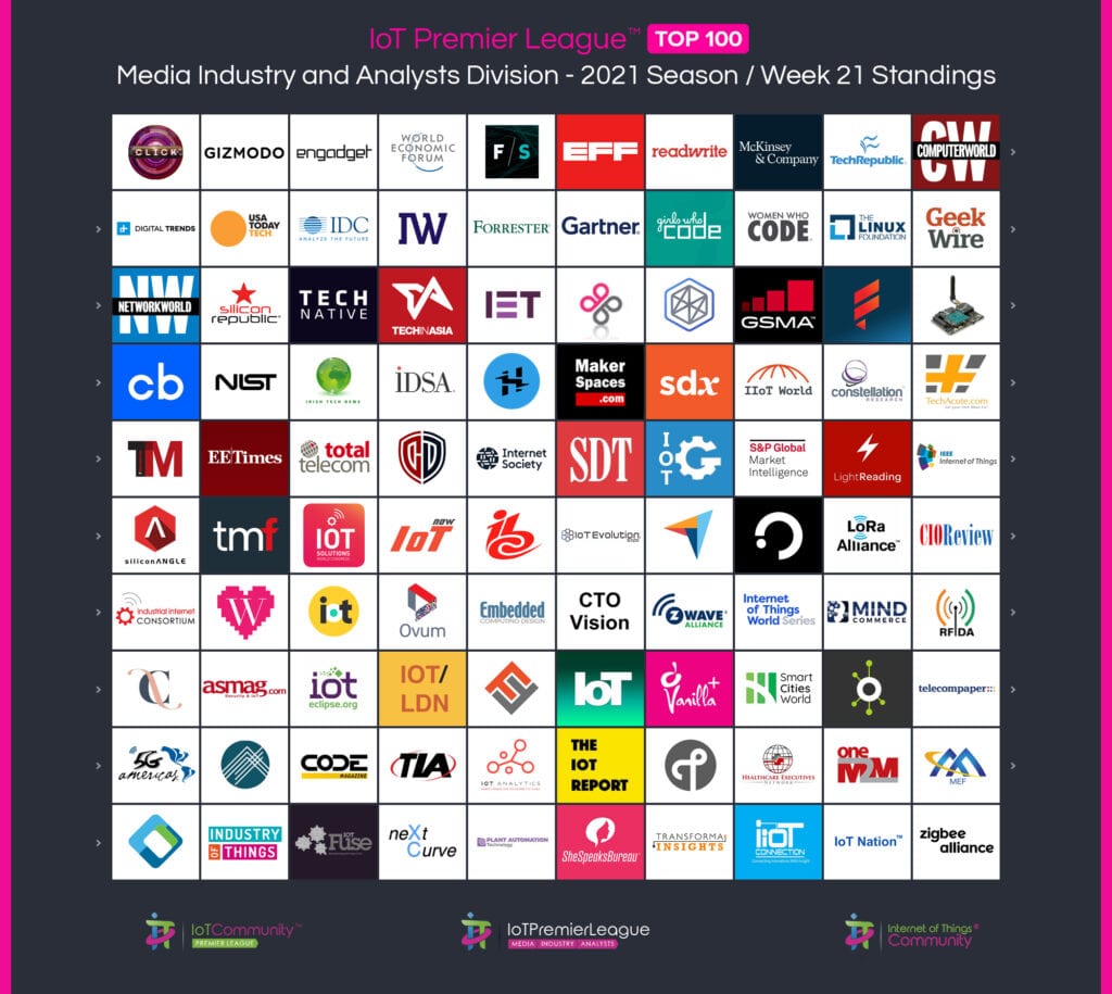 Since 2019, The IoT Premier League™ has been tracking the most inspiring social media accounts of the IoT landscape. This cuts across individual thought leaders, corporate handles and media, industry / analysts; recognising the most so you can follow them, join the community and learn more from the movers and shakers of the Internet of Things.