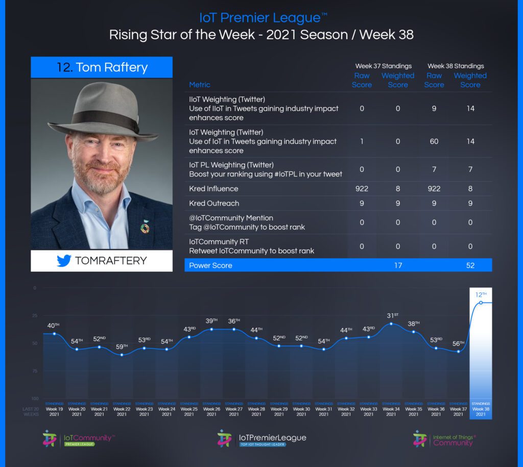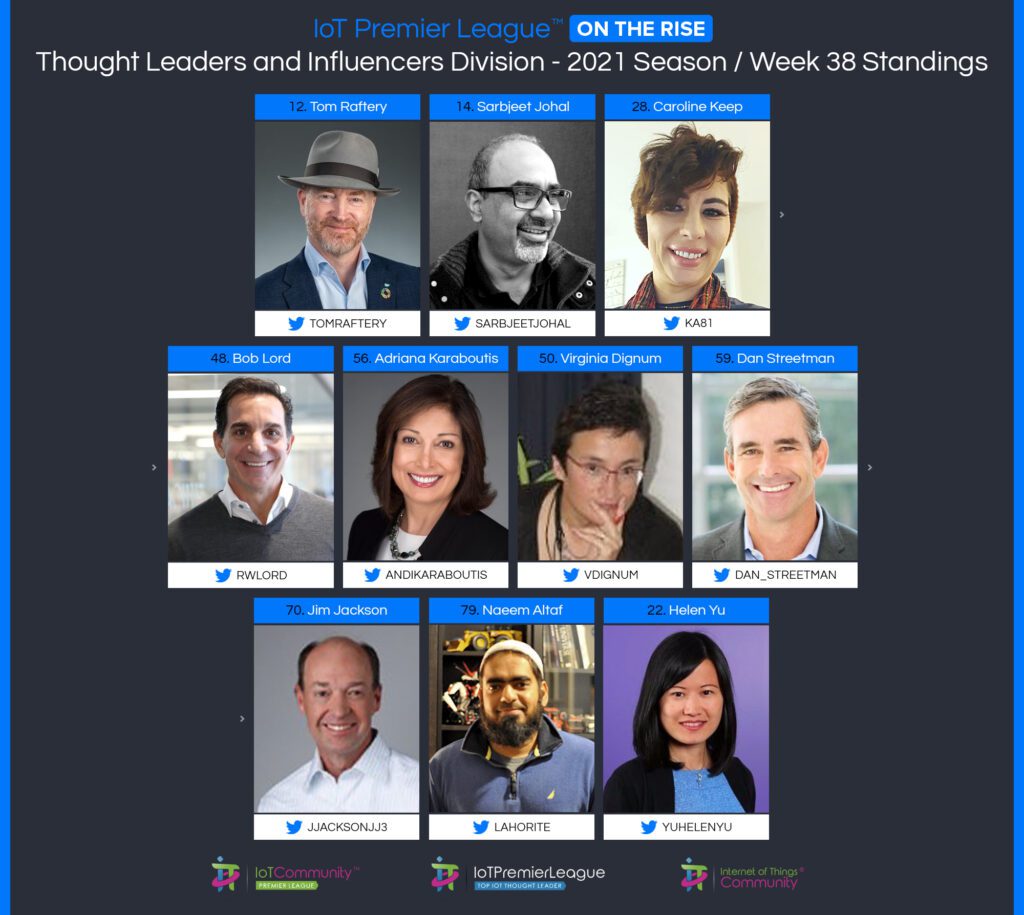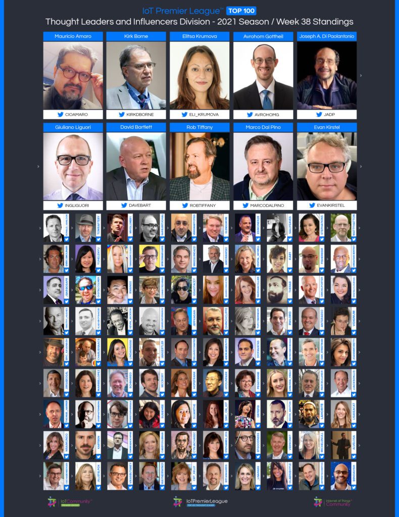 Since 2019, The IoT Premier League™ has been tracking the most inspiring social media accounts of the IoT landscape. This cuts across individual thought leaders, corporate handles and media, industry / analysts; recognising the most so you can follow them, join the community and learn more from the movers and shakers of the Internet of Things.