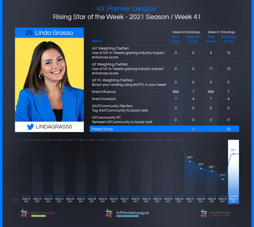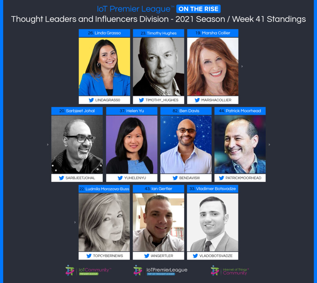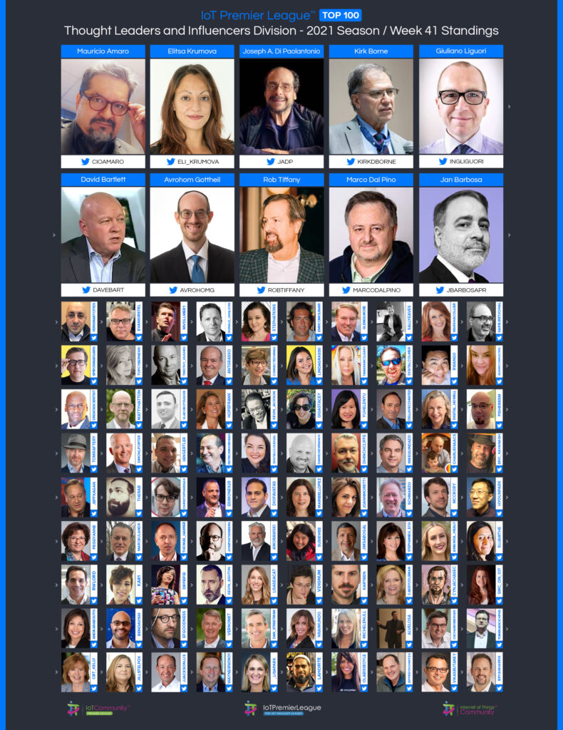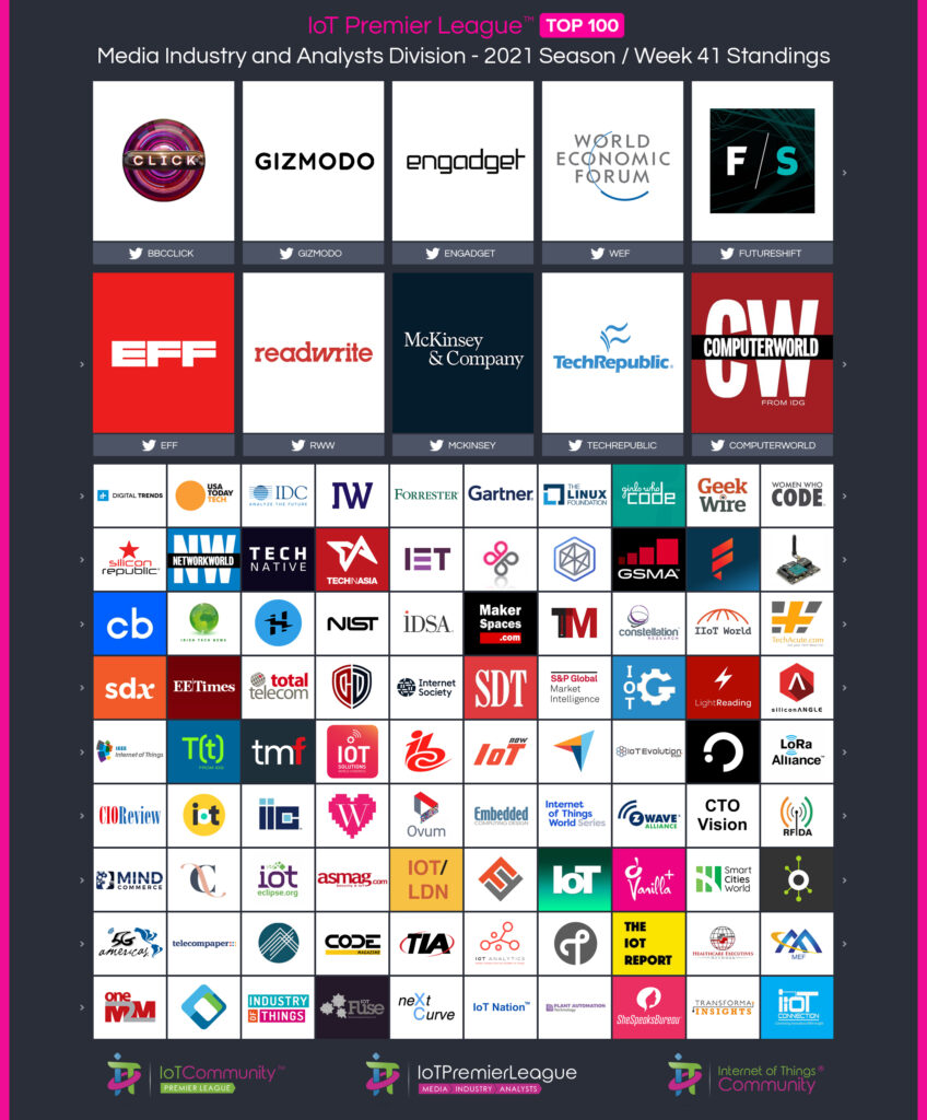 Since 2019, The IoT Premier League™ has been tracking the most inspiring social media accounts of the IoT landscape. This cuts across individual thought leaders, corporate handles and media, industry / analysts; recognising the most so you can follow them, join the community and learn more from the movers and shakers of the Internet of Things.