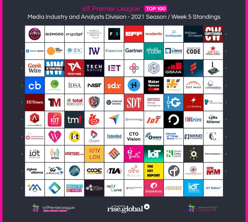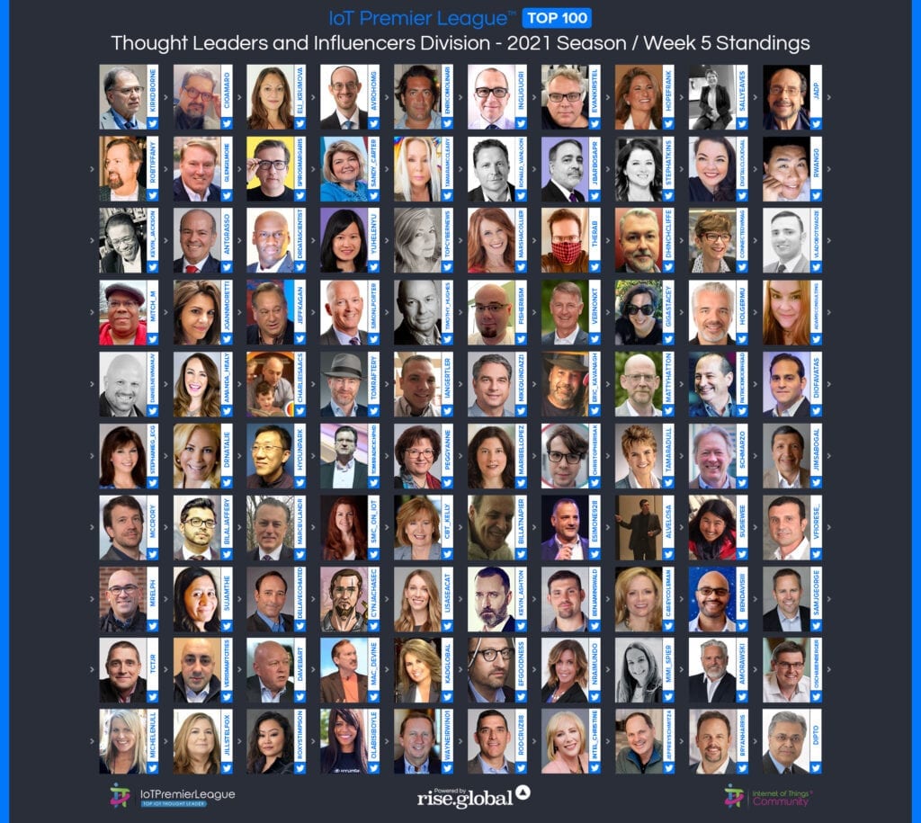 Since 2019, The IoT Premier League™ has been tracking the most inspiring social media accounts of the IoT landscape. This cuts across individual thought leaders, corporate handles and media, industry / analysts; recognising the most so you can follow them, join the community and learn more from the movers and shakers of the Internet of Things.