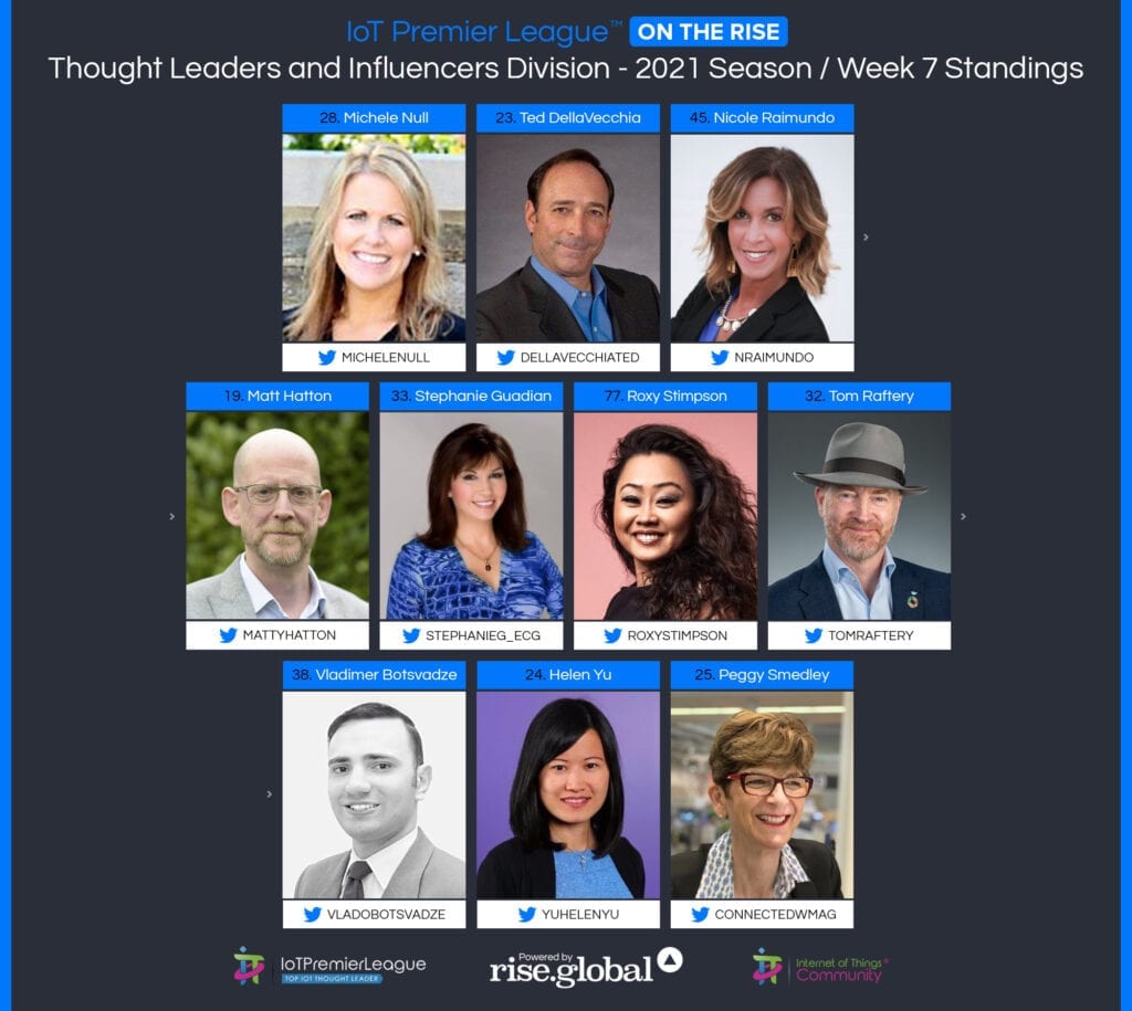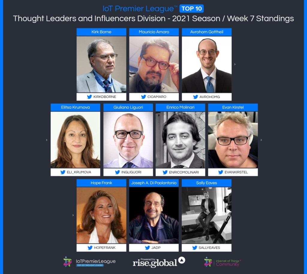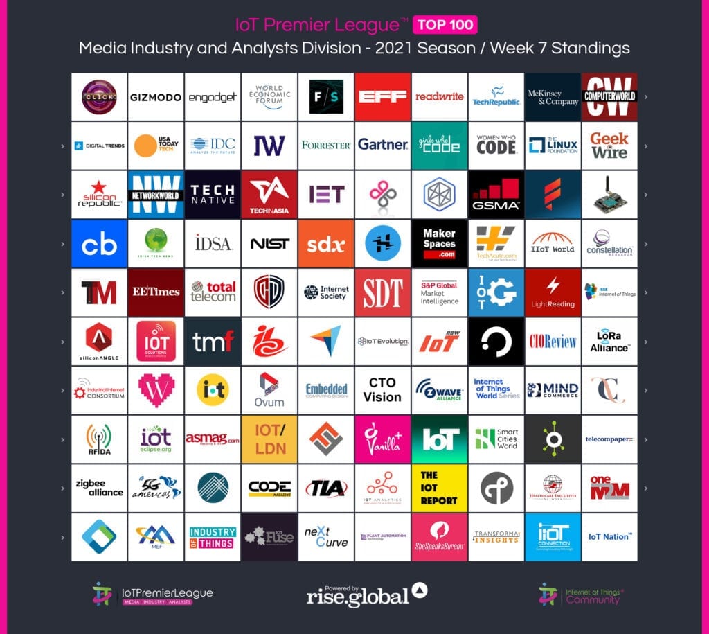 Since 2019, The IoT Premier League™ has been tracking the most inspiring social media accounts of the IoT landscape. This cuts across individual thought leaders, corporate handles and media, industry / analysts; recognising the most so you can follow them, join the community and learn more from the movers and shakers of the Internet of Things.