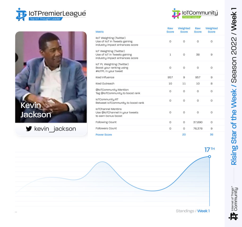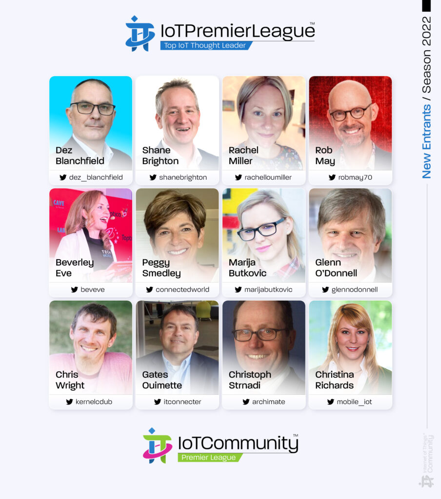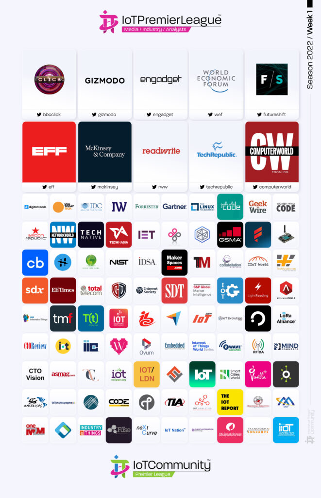 Since 2019, The IoT Premier League™ has been tracking the most inspiring social media accounts of the IoT landscape. This cuts across individual thought leaders, corporate handles and media, industry / analysts; recognising the most so you can follow them, join the community and learn more from the movers and shakers of the Internet of Things.