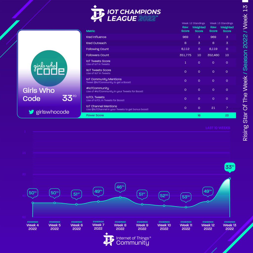 Week 13 standings of the 2022 IoT Premier League and IoT Champions League are published!