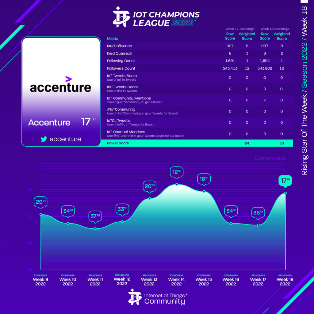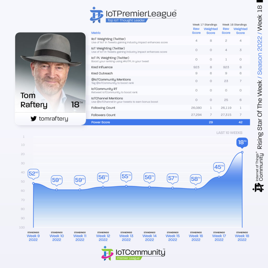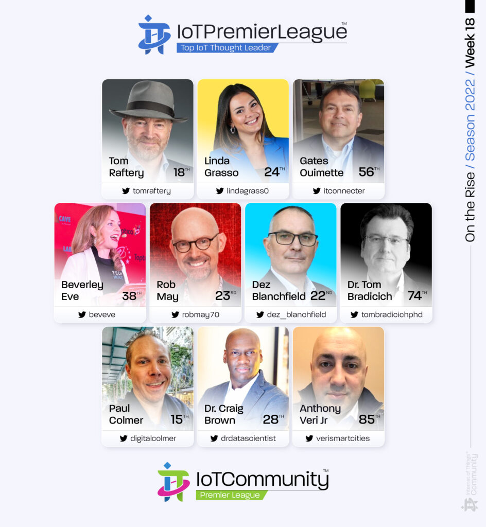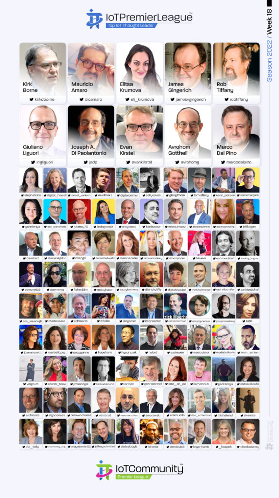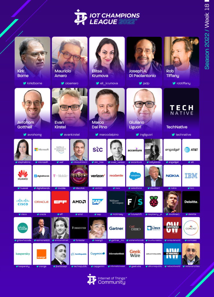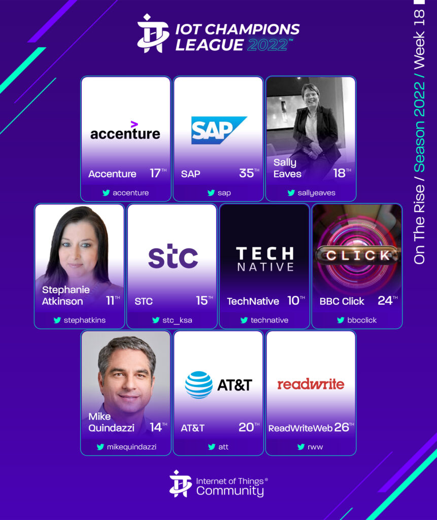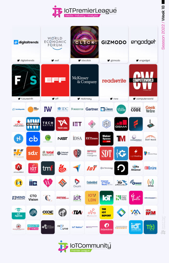 Since 2019, The IoT Premier League™ has been tracking the most inspiring social media accounts of the IoT landscape. This cuts across individual thought leaders, corporate handles and media, industry / analysts; recognising the most so you can follow them, join the community and learn more from the movers and shakers of the Internet of Things.