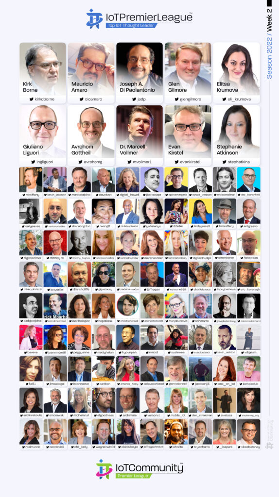 Since 2019, The IoT Premier League™ has been tracking the most inspiring social media accounts of the IoT landscape. This cuts across individual thought leaders, corporate handles and media, industry / analysts; recognising the most so you can follow them, join the community and learn more from the movers and shakers of the Internet of Things.