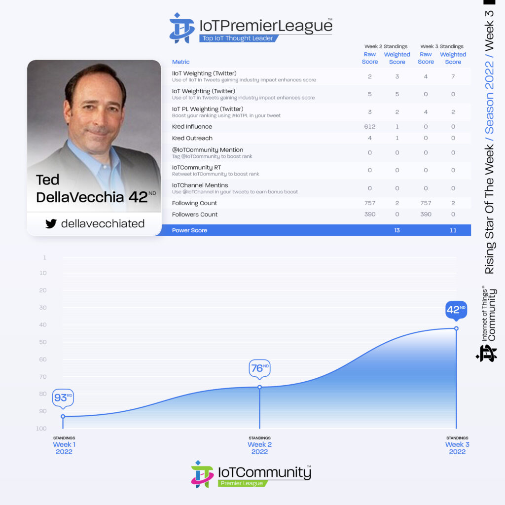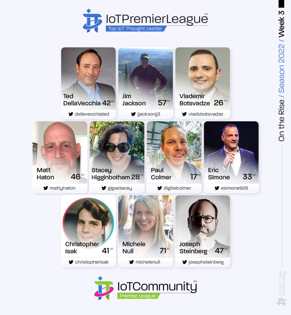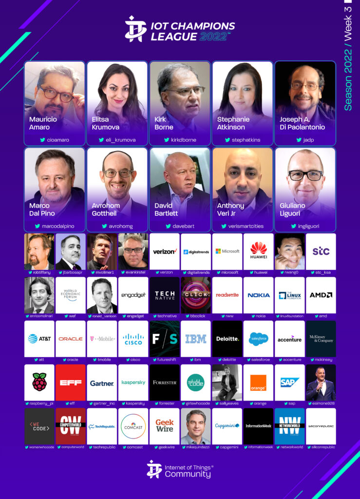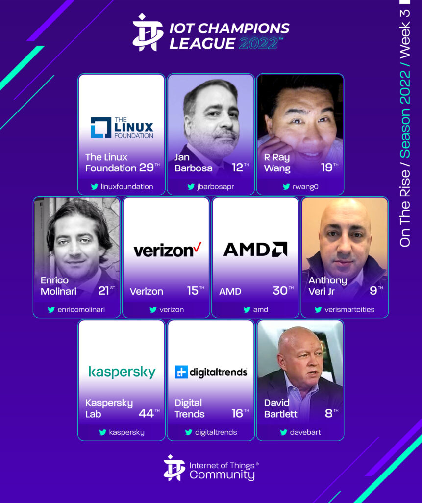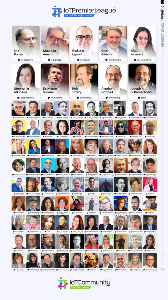 Since 2019, The IoT Premier League™ has been tracking the most inspiring social media accounts of the IoT landscape. This cuts across individual thought leaders, corporate handles and media, industry / analysts; recognising the most so you can follow them, join the community and learn more from the movers and shakers of the Internet of Things.