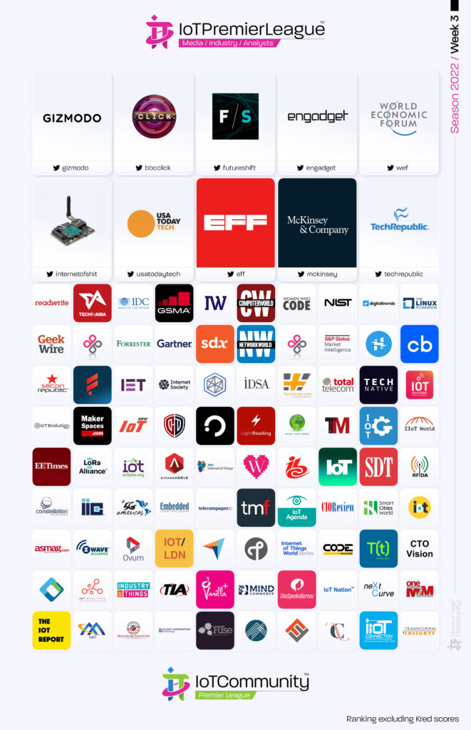 IoT Premier League: Media, Industry & Analysts Division – Top 100: