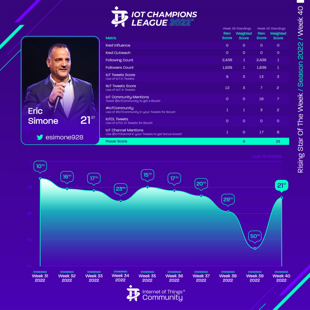 Week 40 standings of the 2022 IoT Premier League and IoT Champions League are published!