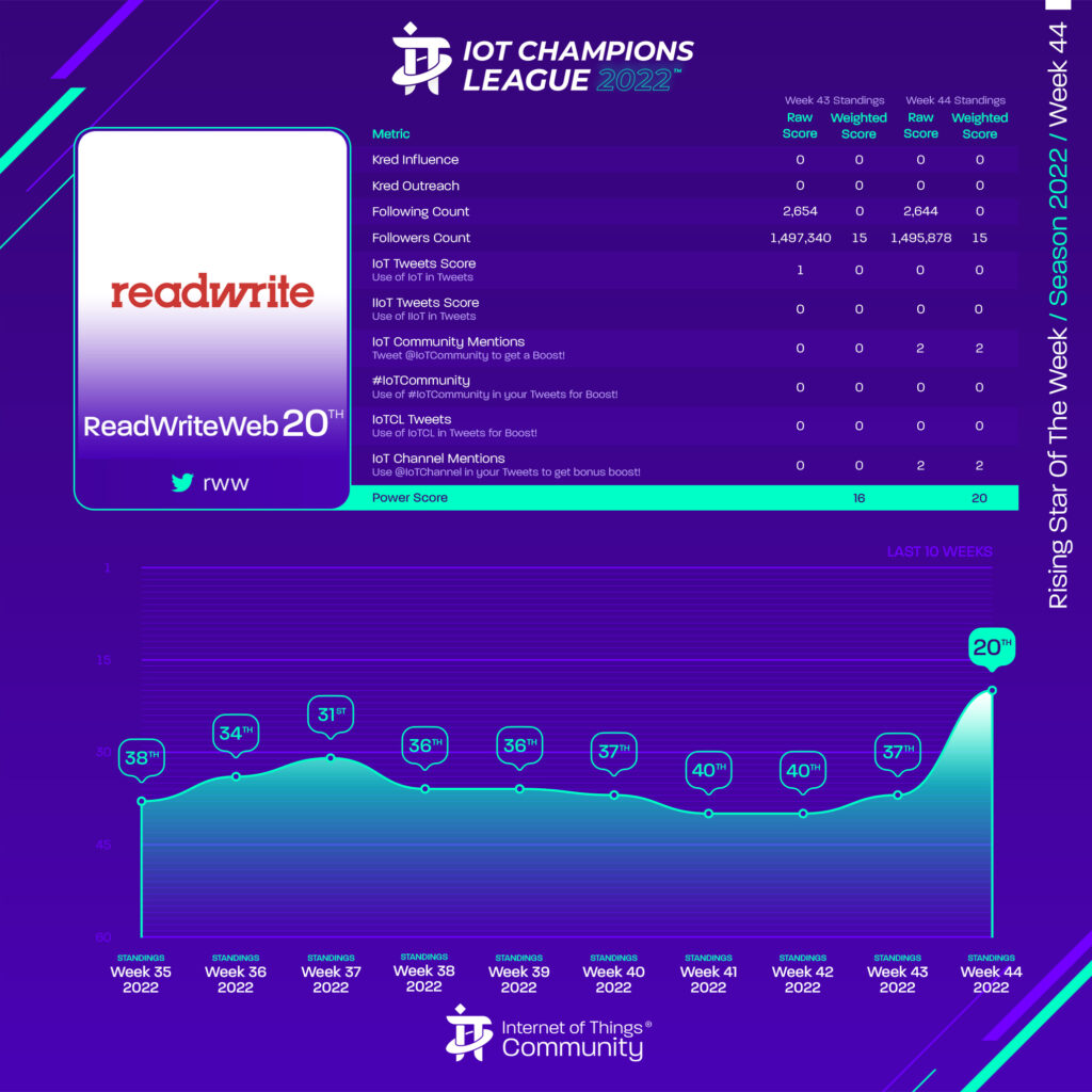 Week 44 standings of the 2022 IoT Premier League and IoT Champions League are published!