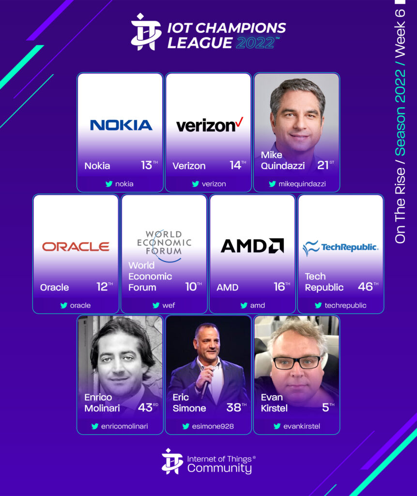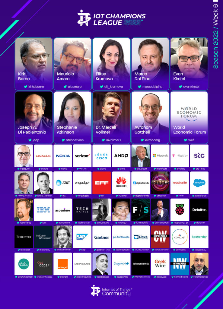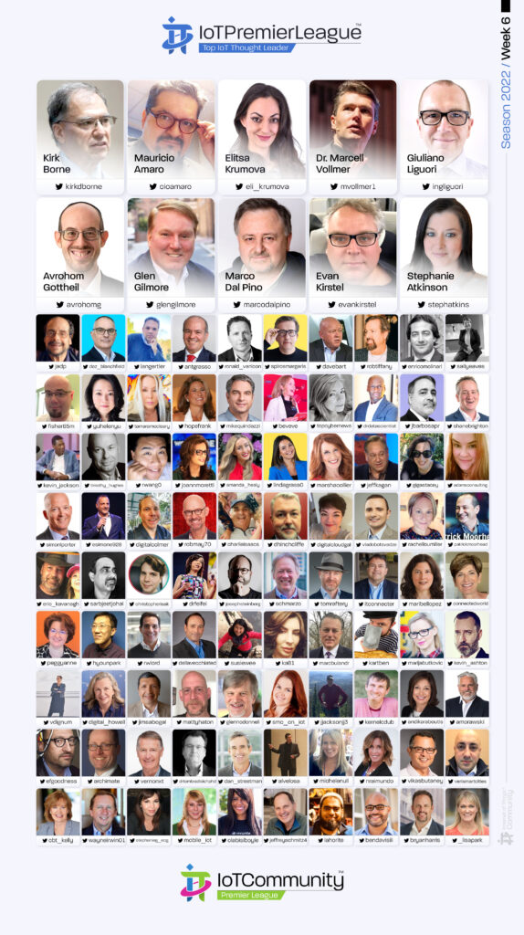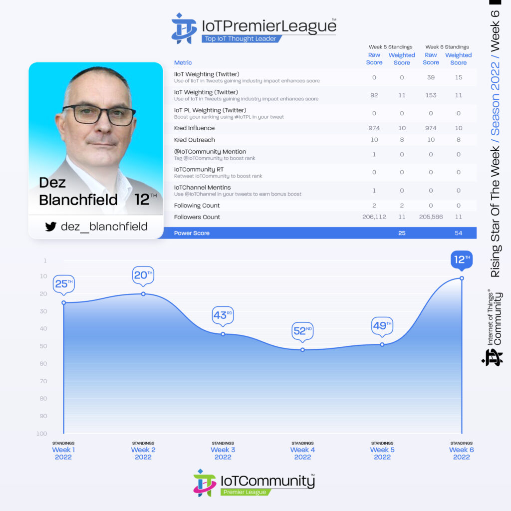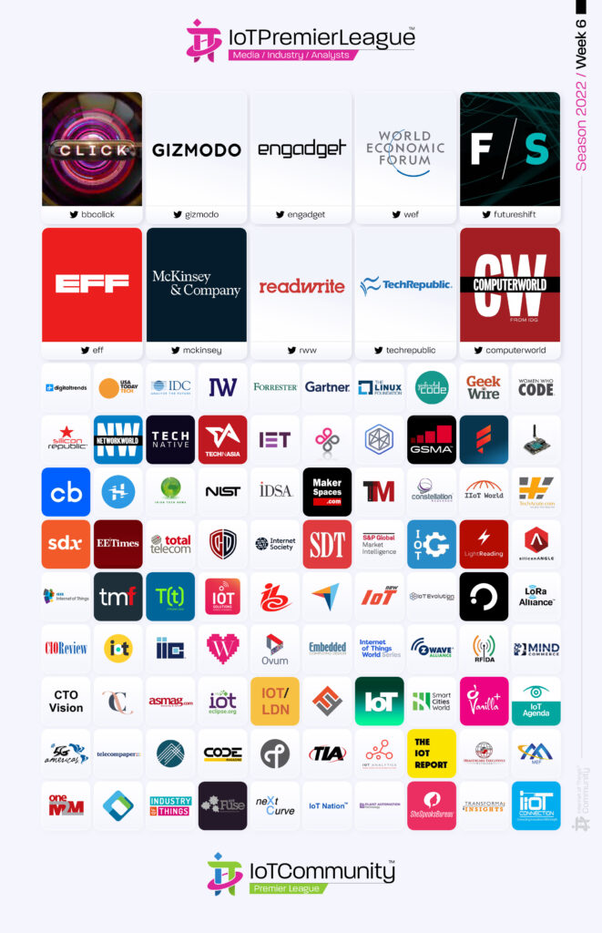 Since 2019, The IoT Premier League™ has been tracking the most inspiring social media accounts of the IoT landscape. This cuts across individual thought leaders, corporate handles and media, industry / analysts; recognising the most so you can follow them, join the community and learn more from the movers and shakers of the Internet of Things.