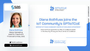 The IoT Community is thrilled to announce Diana Rothfuss, Global Marketing Lead for Fraud and Financial Crimes, SAS, joins the SPTIoTCoE. Diana […] -