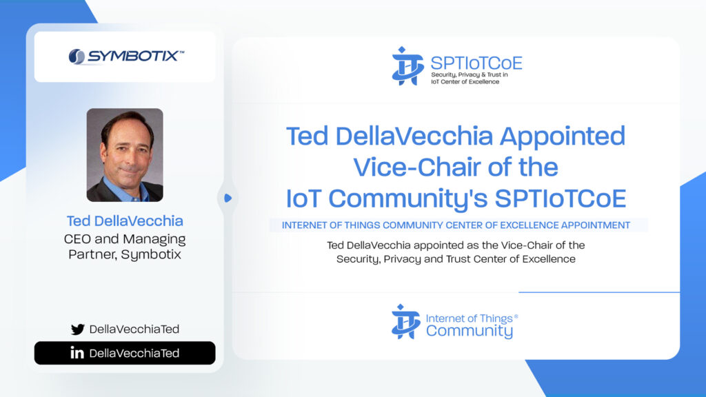 The IoT Community is thrilled to announce Ted, Founder, CEO and Managing Partner of Symbotix appointed Vice Chair of the SPTIoTCoE. Ted DellaVecchia appointed as Vice Chair of the Security, Privacy and Trust of Things Center of Excellence. Please join us in congratulating Ted on his new role within the IoT Community.